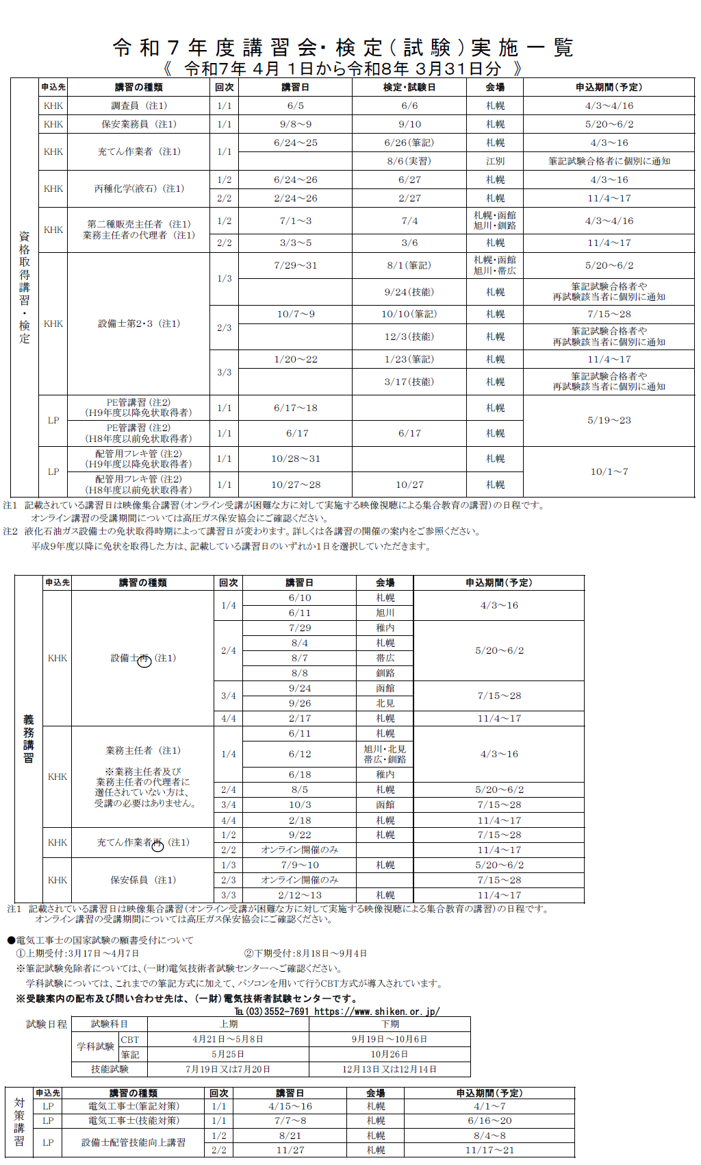 - ・液化石油ガス設備士試験(※技能試験は令和6年12月1日(日)に札幌市で実施)