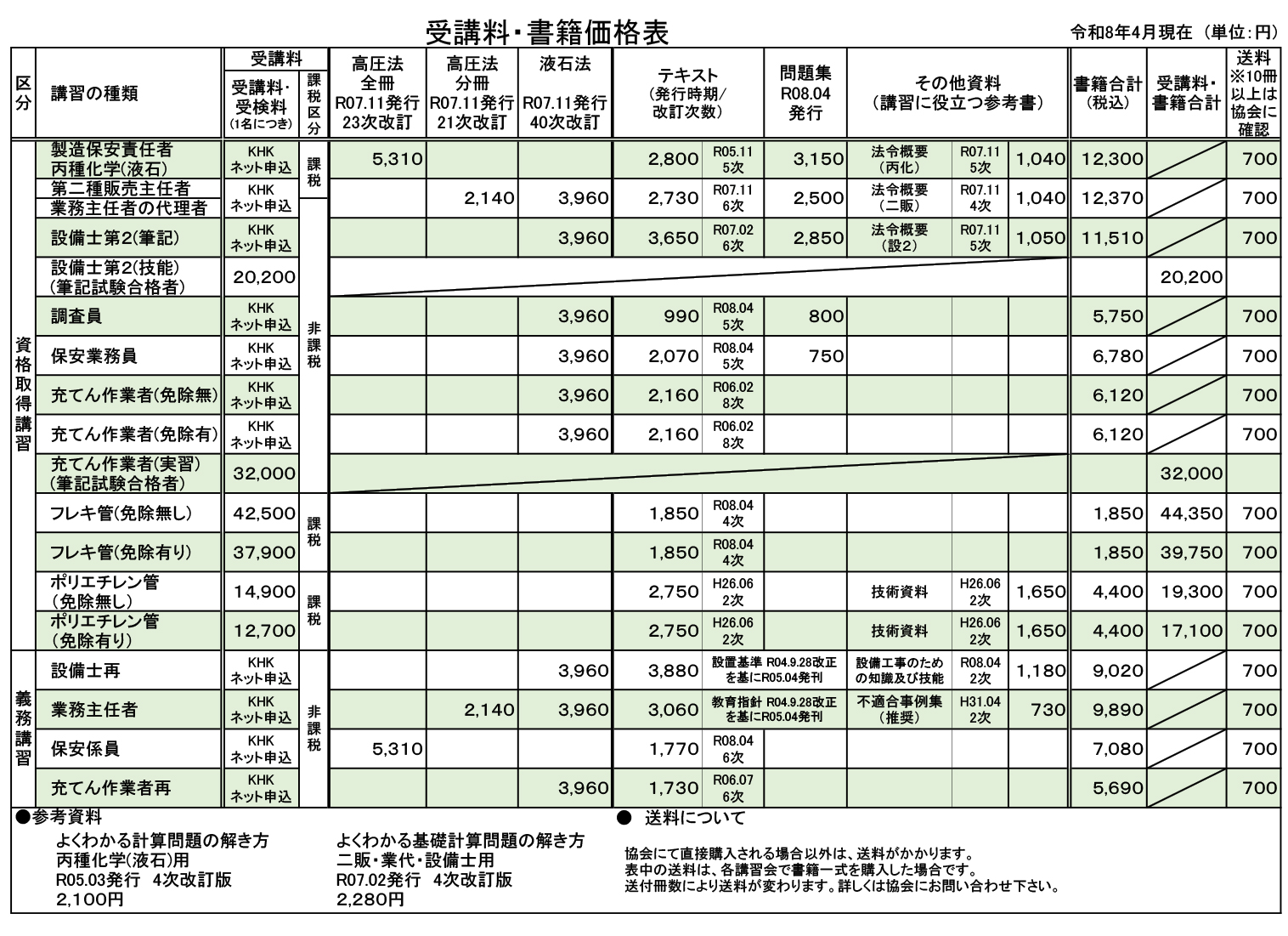 テキスト類の金額については、下記受講料書籍価格表をご覧下さい。